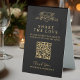 Wedding share your photos upload link table top sign in gold and black portrait format. Personalize with your own wedding upload page via QR code link details, your names and thanks. Ideal for a formal wedding, to get your guests to help share the love and capture your day from all the tables. Other matching items are available. © Original hand drawing and design by Sarah Trett for www.mylittleedenweddings.com on Zazzle.