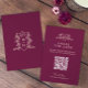 Wedding share your photos upload QR code link in peach and dark burgundy red portrait format card. Personalize with your own wedding upload page via QR code link details, your names and thanks. Ideal for a formal wedding, to get your guests to help share the love and capture your day. Other matching items are available. © Original hand drawing and design by Sarah Trett for www.mylittleedenweddings.com on Zazzle.