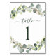 Eucalyptus Greenery Succulent Botanical Watercolor Spring Wedding Table Number Card on white background - includes beautiful and elegant script typography with modern botanical leaves and greenery for the special Wedding day celebration.