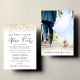 Elegant elopement or private wedding announcement and reception invitation. The front features a gold faux glitter confetti overlay and "Happily Ever After Party" in simple typography and a chic, modern script. Personalize your announcement and invitation and add your names in a signature-like script. The reverse side features your wedding photo, first names and wedding date.