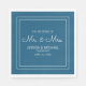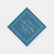 Modern, chic, and elegant blue and white wedding reception paper napkins with the bride's and groom's names and their wedding date.