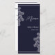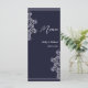 Wedding Reception Navy and White Elegant Menu Card for your Reception Dining Accessories. Created with decorative white trim on a navy background, the front text includes: MENU, The Bride and Groom's Names and Wedding Date. The reverse text includes: MENU, along with Appetizer, Entre and Dessert Selections in navy text on a white background. To personalize, simply insert your details into our easy template, replacing the sample text. Be sure to view the entire Wedding Navy and White Elegant Collection for matching cards and accessories.