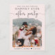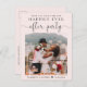 Elegant pink save the date postcard for a reception or party after your elopement or small wedding. The front features your wedding day photo and "Save The Date For Our Happily Ever After Party" in simple typography and a chic script. Add your first names and reception date. On the reverse side, personalize your announcement, input your wedding website address to create a QR code for guests to scan for more information and add your names in a signature-like script.