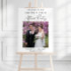 Chic wedding reception welcome sign foam board featuring your wedding day photo and "Welcome To Our Happily Ever After Party" in a mix of simple typography and a stylish modern script. Under your photo, add your first names and reception date. Perfect for receptions after an elopement or small private wedding.