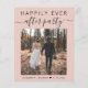 Budget-friendly blush pink elopement or private wedding announcement and reception or celebration party invitation. The front features your photo, "Happily Ever After Party" in modern typography and a stylish script with swashes and your names and wedding date. On the reverse side, personalize your marriage announcement and reception invitation in more detail, easily create your wedding website QR code for guests to scan to see your wedding photos, all the details and to RSVP online, and add your names in a signature-like script.