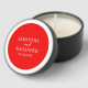 A minimalist and plain, but striking, bright red circle has white script and elegant font templates on it for the bride and grooms names plus the date of their wedding. These are ideal as wedding favors and / or as decor for the wedding venue tables at the reception. Add your own personalized touch to make them unique and feel free to change the black container to white, if preferred