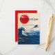 The front design showcases a dynamic fusion of two iconic motifs—Mount Fuji and a crashing indigo wave—beneath a bold crimson sun. The dramatic backdrop sets the tone for a vibrant celebration, while the title “The Reception” and your names appear in elegant typography, creating a harmonious blend of cultural artistry and personalized sophistication.