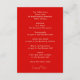 The reverse features a vivid red background with a clean, minimalist layout for all your reception details. From the welcoming ceremony and photographs to dinner, speeches, and dancing, each moment is clearly outlined in a graceful serif font. This format ensures guests feel informed, welcomed, and inspired to celebrate your special day in full.