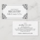 Tastefully let your guests know where you're registered with these elegant vintage corners registry cards in black. You can use these for bridal showers, couples showers, etc. The design is set in dusty blue, but you can change it to anything you like just by changing the background color: