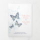 A six-page wedding renewal or wedding ceremony program. Edit this wedding program with your own names, dates, introduction, ceremony wording, wedding party attendants, a photo of your first elopement or restricted wedding, or a photo from your engagement, and add your own words of thanks on the back. Matching dark muted blue, light blue, coral pink orange, and cream butterflies wedding and other color wedding products and color options are available. Original butterfly inked art and design by Sarah Trett for www.mylittleedenweddings.com on Zazzle.