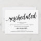 This is a Postponed Wedding Announcement card, with card title, New Date, in Black script font, Modern Rustic design themed.