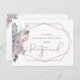 Announce the postponement of your wedding with these postcards with a beautiful watercolor floral bouquet of boho wildflowers in shades of violet, purple, lilac, dusty blue, peach, blush and greens and accented with a rose gold or terra cotta geometric design and handwritten typography title and charcoal gray text. The back side offers a fully editable area to personalize your message. Contact the designer via Zazzle Chat or makeitaboutyoustore@gmail.com if you'd like this design modified, on another product or you want coordinating items.