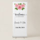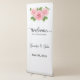 This retractable banner sign is shown in a wedding format, shown with a pink rose's art print.