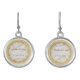 Stylish wedding ring earrings customizable by names and wedding date. Great gift for bride to be, brides, mother of the bride, bridesmaids, female friends and family members attending your wedding. Golden rings with white satin sheet background. Unique gift for her! Also a great favor for all your female wedding guests or your thank you gift for your brides maids! An elegant keepsake for your special day!