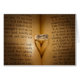 Close up of wedding ring heart shadow on open Holy Bible for newlywed congratulations.