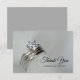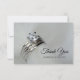 Personalize the elegant Wedding Rings Flat Thank You Note Cards with your own words of gratitude on the second side. Suitable for use after your engagement party, bridal shower or marriage. These classy custom wedding thank you notes features a close up photograph of a round diamond engagement ring and wedding band set with a gray background.