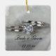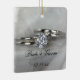 Customize the pretty Wedding Rings on Gray Square Shaped Ornament with the personal names of the bride and groom and specific marriage ceremony date. This classy custom wedding ornament features a digitally enhanced close up photograph of a diamond wedding ring set with a soft gray background.