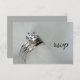Customize the elegant Wedding Rings RSVP Response Card with your specific marriage reply date. This classy custom r.s.v.p. card features a close up photograph of a round diamond engagement ring and wedding band set with a gray background.