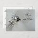 Announce your upcoming nuptials with the elegant Wedding Rings Save the Date Postcard. This classy custom marriage keep the date card features a close up photograph of a diamond engagement ring and wedding band set with a white tulle background.