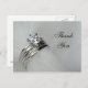 Add your own personal note of gratitude and appreciation to the elegant Wedding Rings Thank You Postcard. Suitable to use for gifts received after an engagement party, bridal shower or marriage. This classy custom wedding thank you note features a photograph of a diamond engagement ring and wedding band set with a white tulle background.