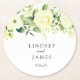 Wedding paper coaster is shown with a lovely white rose floral print.