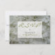 An RSVP card featuring a background of white hydrangeas on front. Customizable gray and green text.