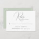 These elegant wedding RSVP cards feature "RSVP" in graceful calligraphy, blending modern style with a minimalist touch. The clean layout includes template fields for your custom details and guest responses *with meal choice*, making them perfect for a *formal* event. The back showcases a stylish *sage green* color, adding a soft, sophisticated finish. A refined option for couples seeking *simple*, *modern* wedding stationery with timeless appeal.
