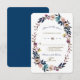 Elegant, delicate dusty blue, misty rose watercolour flowers wreath on a white background, making room for your wedding day details; on the back a navy blue background. A great choice for all seasons weddings, especially for fall, or winter weddings. Use Customize tool to add your info and change fonts colours. For matching items, please, visit my Dusty Blue Misty Rose Flowers Collection.
