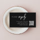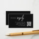 A simple, stylish wedding RSVP QR code enclosure card in a modern minimalist design style. Featuring clean classic typography on a black background, this elegant card adds a chic and sophisticated touch to your wedding stationery suite. The text can be easily personalized with your names, wedding website, scannable QR code, and custom message to keep your guests informed and connected. Perfect for modern couples who value both style and convenience, this enclosure card helps guests quickly access your wedding website (on sites like The Knot, Zola or With Joy) for RSVPs, travel details, and more. Designed to complement any wedding theme, it’s a timeless and refined way to share important information about your upcoming special day.