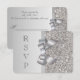 Elegant custom silver wedding RSVP cards with a beautiful printed silver sequins pattern, a cute shiny silver printed bow and ribbon and pretty printed diamond bling jewel. These classy, glamorous, fashionable flat cards are decorated both sides. Beautiful, chic, trendy, modern invitations. PLEASE NOTE: These are flat printed graphics - no real bows, sequins or raised parts. Text, font and color of font can all be customized. If you need assistance customizing your product please contact me through my store. I will be happy to help. I have matching products in my store.