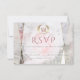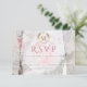 Wedding RSVP Response Card | Modern Geometric Pink Roses | Unique Wedding design by ©WhimsicalArtwork features an offset terrarium style geometric shape with varying transparencies in the facets to allow the Pink Rose Design background to show through in a variety of shapes and intensities. A Playful approach of typography in the text - with Bride and Groom first name initials surrounded by a laurel wreath on top - in two colors (deep rose and gold) - followed by coordinating serif fonts in sage green (picked up from the rose design leaves) dark rose (picked up from the dark rose shades in the background) and gold lettering. The wedding details clean and simple on the front only of the invitation - a coordinating rose floral design on back. All Text Including font styles and colors are customizable - if you need help please feel free to contact me.