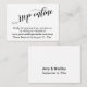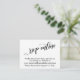 As you plan your special day, you've opted to ask that your guests respond online rather than sending a card in the mail. This pack of simple, elegant insert cards has been designed to balance flexibility with distinction. The typography overlay, a text-based graphic that reads "rsvp online", was created using a modern, swirling script font. All other aspects of the design can be fully customized to your liking. In addition to using the template fields provided to add your personal details, you are also free to customize further. All editable text appears in a modern sans-serif font. As you prefer, please feel free to change the background color, font, sizes and positioning of elements. Please feel free to reach out to me for customizing assistance or for special requests. // 99 // Designed by Melody Watson for Paper Muserie.