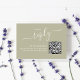 This design features a simple QR code, RSVP, wedding enclosure card, with a minimal elegant sage green, a simple, enclosure, a budget RSVP response, and our website.