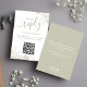 This design features a QR code for weddings, your guests can RSVP online with this minimal, enclosure card, a simple, sage green, with our website, budget RSVP response