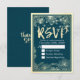 Wedding RSVP Reply Blue Gold Flowers String Lights