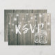 Wedding RSVP Rustic Wood & Mason Jar String Lights Invitation Postcard