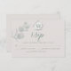 Wedding RSVP | Silver Sage Eucalyptus Monogram Geometric Botanical Wedding - Watercolor silver dollar transparent eucalyptus leaves in sage green with a modern decor geometric silver box at a 45 degree angle holding a square off white notice for the monogram frame - - all set on a warm latte beige background. Another Bridal design created by © WhimsicalArtwork™ A Playful approach of typography in the text - with Bride and Groom first name initials surrounded by a geometric square- in two colors (sage and silver) - followed by coordinating modern fonts.