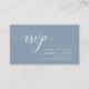 Introducing our Modern Elegance Wedding RSVP Card, dusty blue theme– the perfect blend of sophistication and simplicity. Designed for the contemporary couple, this RSVP card features clean, minimalist script, and a subtle touch of luxury to confirm their guests' attendance. The sleek design complements the dusty rose pink wedding theme, adding a touch of class to your stationery suite. Ensure your special day is meticulously planned with our elegantly modern RSVP card – a timeless keepsake for you and your guests. Designed by TeeshaDerrick