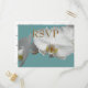 Romantic wedding invitation RSVP cards to enclose with coordinating invitations, designed with pretty white orchids against a jewel tone shade of turquoise blue. These custom guest reply cards include a personalized area for entree choice as well as a pre-addressed return address area. All template areas may be customized. Feel free to contact me if you need any assistance with customizing your design.