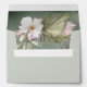 Wedding sage is a light green. The inner envelope holds a boho watercolor rendering of orchids and palm foliage, backed with a moody deep sage watercolor wash background.