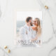 Elegant and modern wedding Save the Date card with a photo of the engaged couple on the front and line-art floral along with your information on the back. Includes space to add an address to your wedding website.