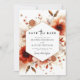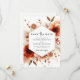 This botanical design features warm tones of burnt orange and terracotta watercolor anemones and dahlias. Delicate copper glitter splatters and dried autumnal foliage create a sophisticated seasonal mood. The warm palette is complemented by soft cream and earthy brown botanical elements for a romantic fall aesthetic.