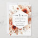 Soft watercolor washes of burnt orange and rust define the large, open-petaled poppies in this autumnal design. Delicate sprigs of dried foliage and smaller filler blossoms accent the outer edges in shades of sienna and tan. The warm, earthy palette creates a sophisticated bohemian aesthetic perfect for late-season ceremonies.