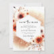 Warm terracotta and copper tones define this artistic floral arrangement, perfect for a romantic fall atmosphere. Delicate watercolor dahlias are complemented by autumn foliage and a soft, shimmering bokeh effect. This design captures the essence of a cozy seasonal event through its rich, earthy palette and graceful botanical details.
