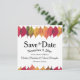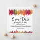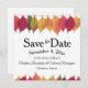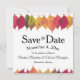 Send off the "Save The Date" announcement for your autumn wedding date with a top and bottom border of colorful fall leaves on a string. Personalize the text in the template fields or click customize to select a typeface style, size, and color you prefer.
