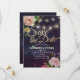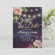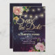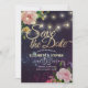 Save The Date Wedding Invitation Card Templates - Faux Gold Foil Script, Elegant Watercolor Floral Pink Roses and String Lights on Purple Sparkle Bokeh Lights Background.