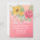 Save The Date Wedding Invitation Card Templates - Elegant Modern Calligraphy Script and lovely Vintage Watercolor Floral on Pink Rose Gold Glitter Background.