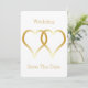 Wedding save the date invitation gold coloured hearts design. Customise this wedding save the date invitation with your wedding details then have it printed and sent to you or instantly download it. Should you require any help with customising then contact us through the link on this page. Gold coloured hearts design personalised wedding save the date invitation that you can have printed or instantly download