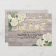 Save The Date Wedding Invitation Postcard Templates - Elegant White lovely Watercolor Hydrangea Flowers and String Lights on Rustic Wood Background.