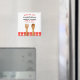 It was a bit smaller than expected, but I was too excited to check dimensions. The product itself send well printed though the grey text is a bit paint. Magnet worked perfectly on my fridge.